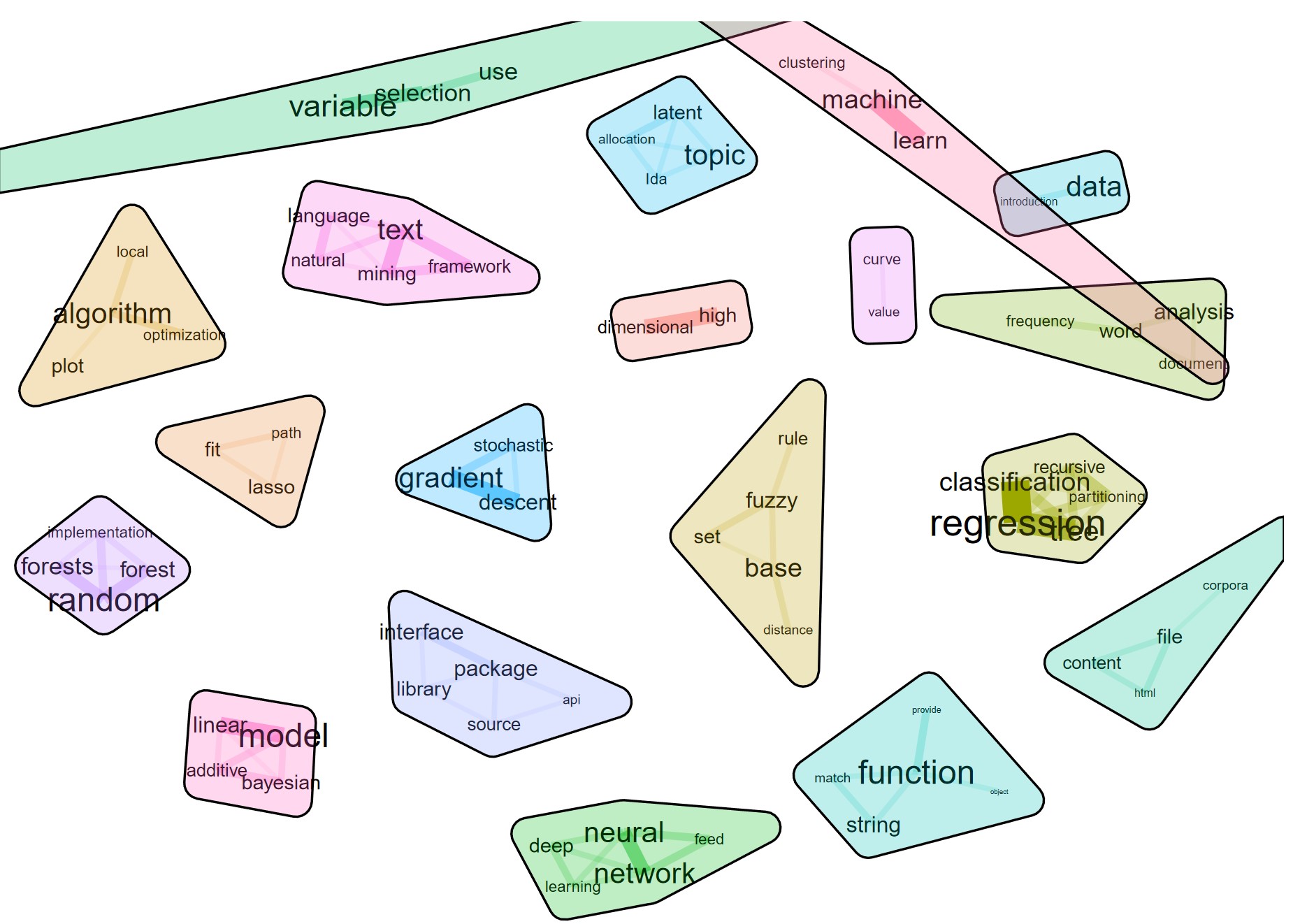 Provides functionalities for displaying text co-occurrence networks, text correlation networks, dependency relationships as well as text clustering.